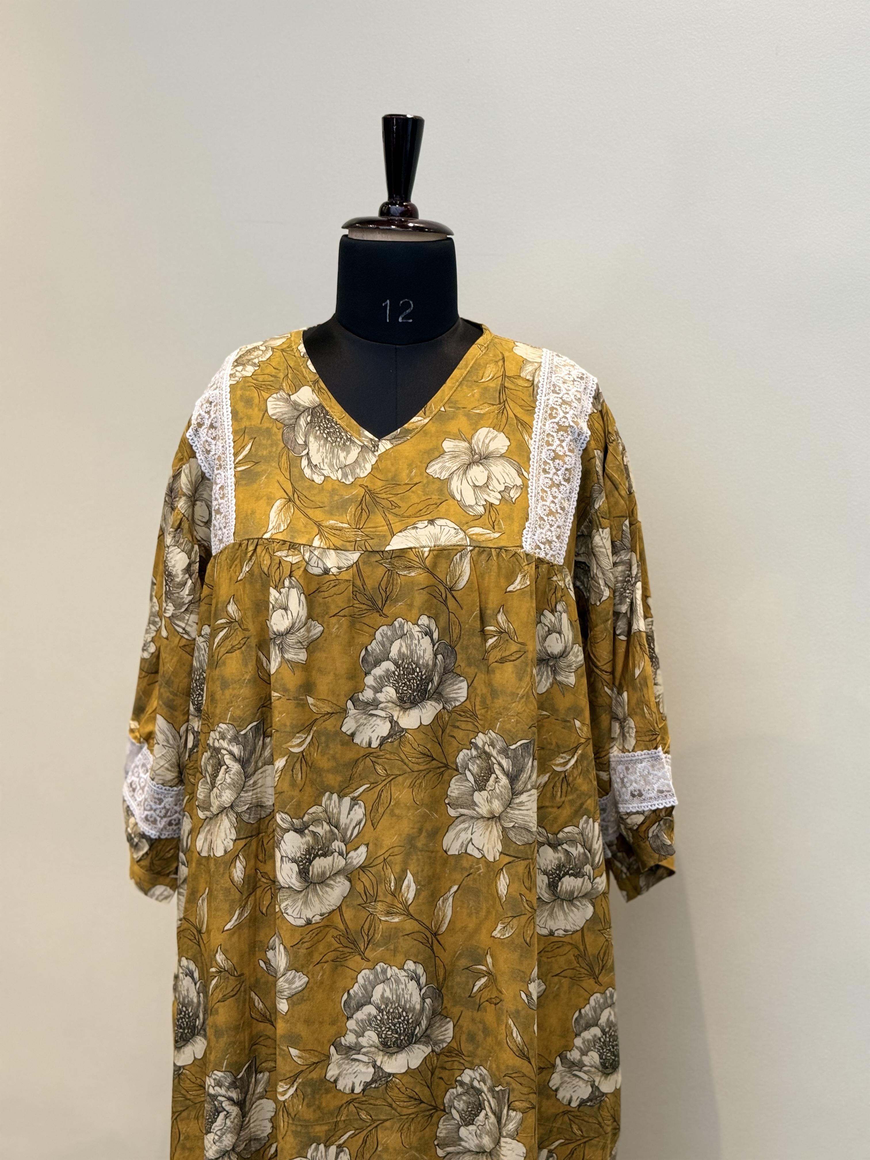 This stylish maxi is designed for comfort and effortless elegance. The loose flowing silhouette provides ease of movement, while the balloon sleeve design adds a fashionable and graceful touch to the overall look.