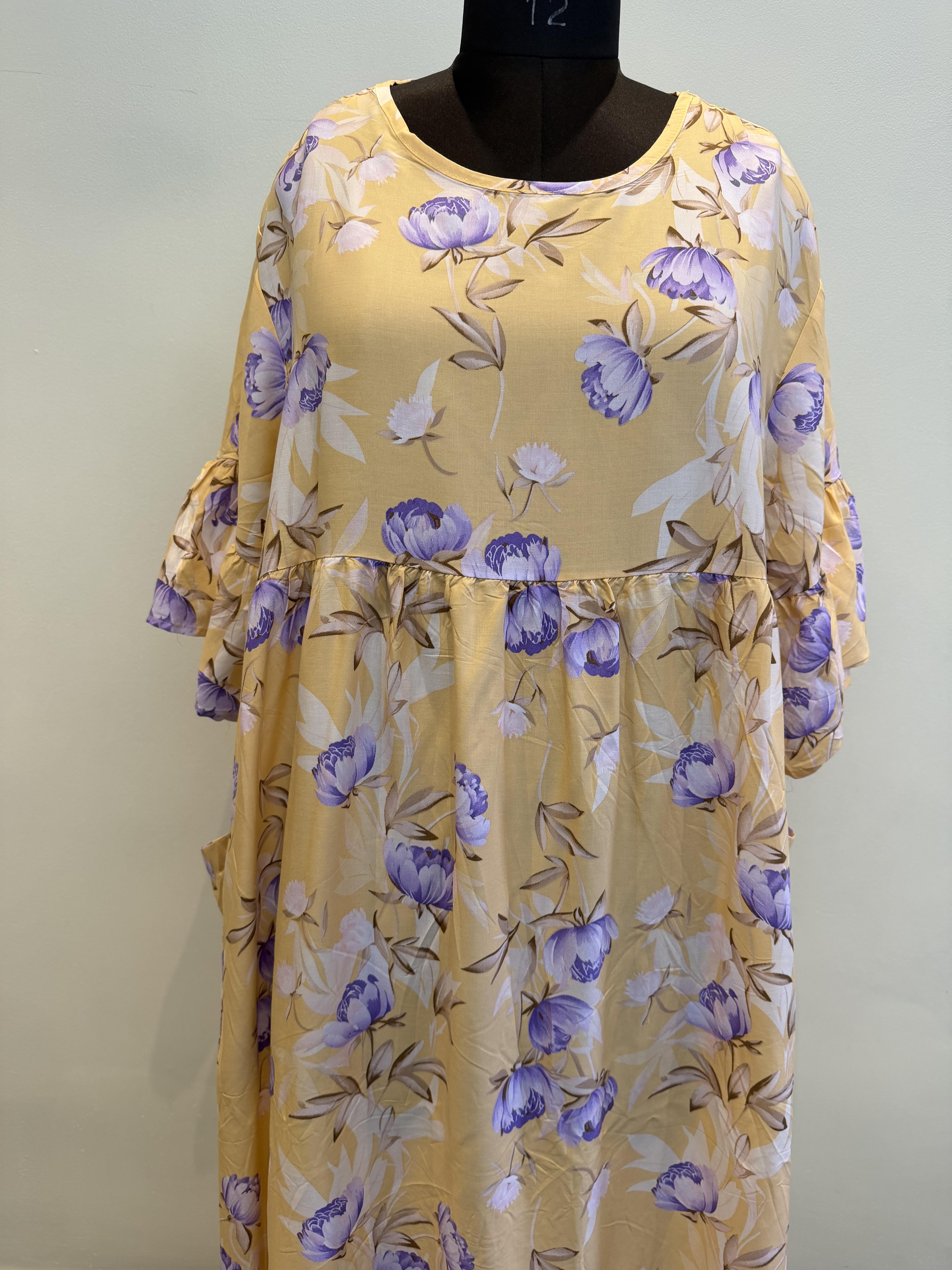This elegant floral maxi is designed for relaxed everyday comfort. The soft flowing silhouette and generous flare provide ease of movement while maintaining a graceful look.