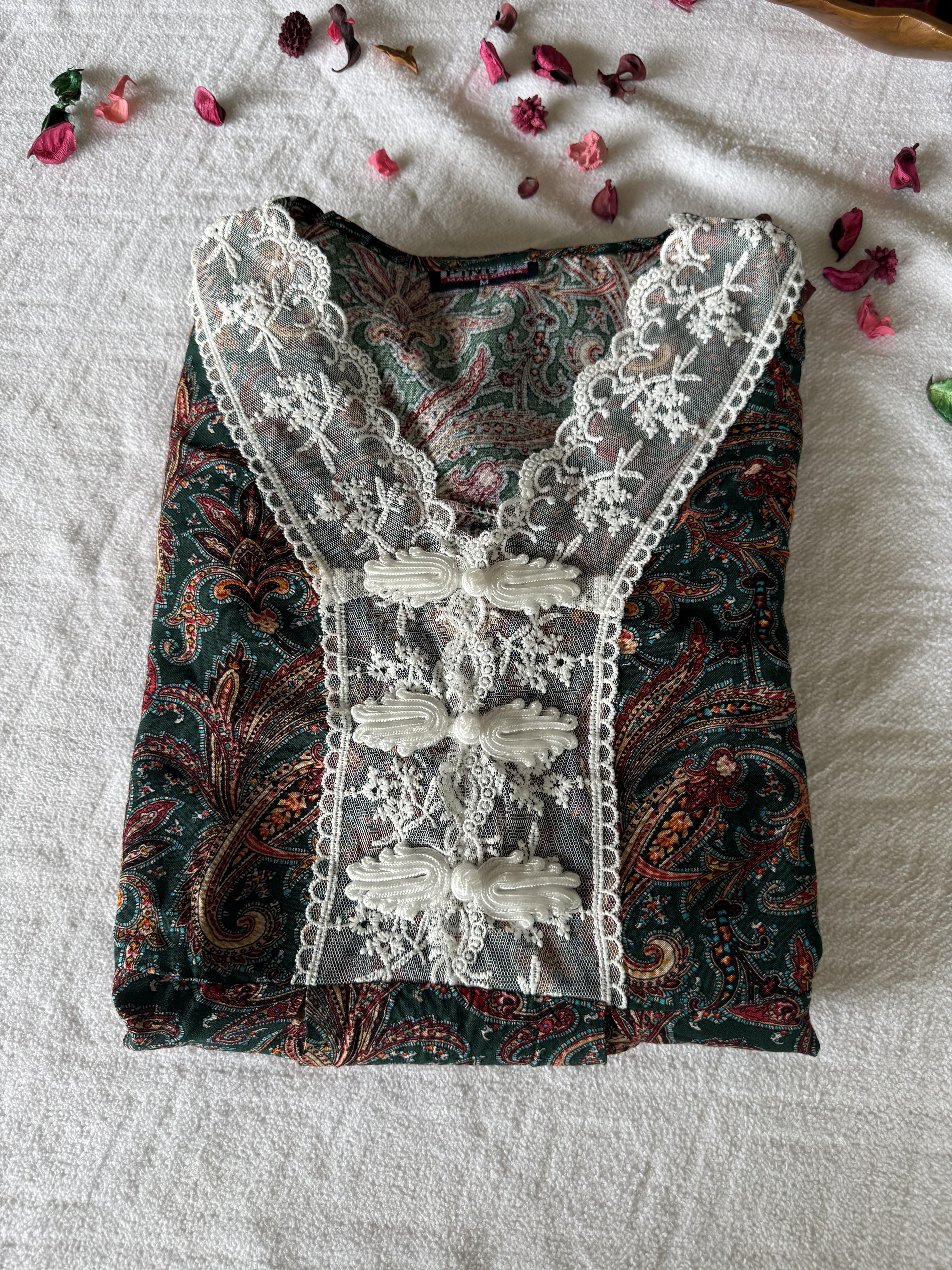 This is a loose fit Dubai maxi. Customers are kindly requested to check the size measurements carefully before placing the order, especially if purchasing for the first time.