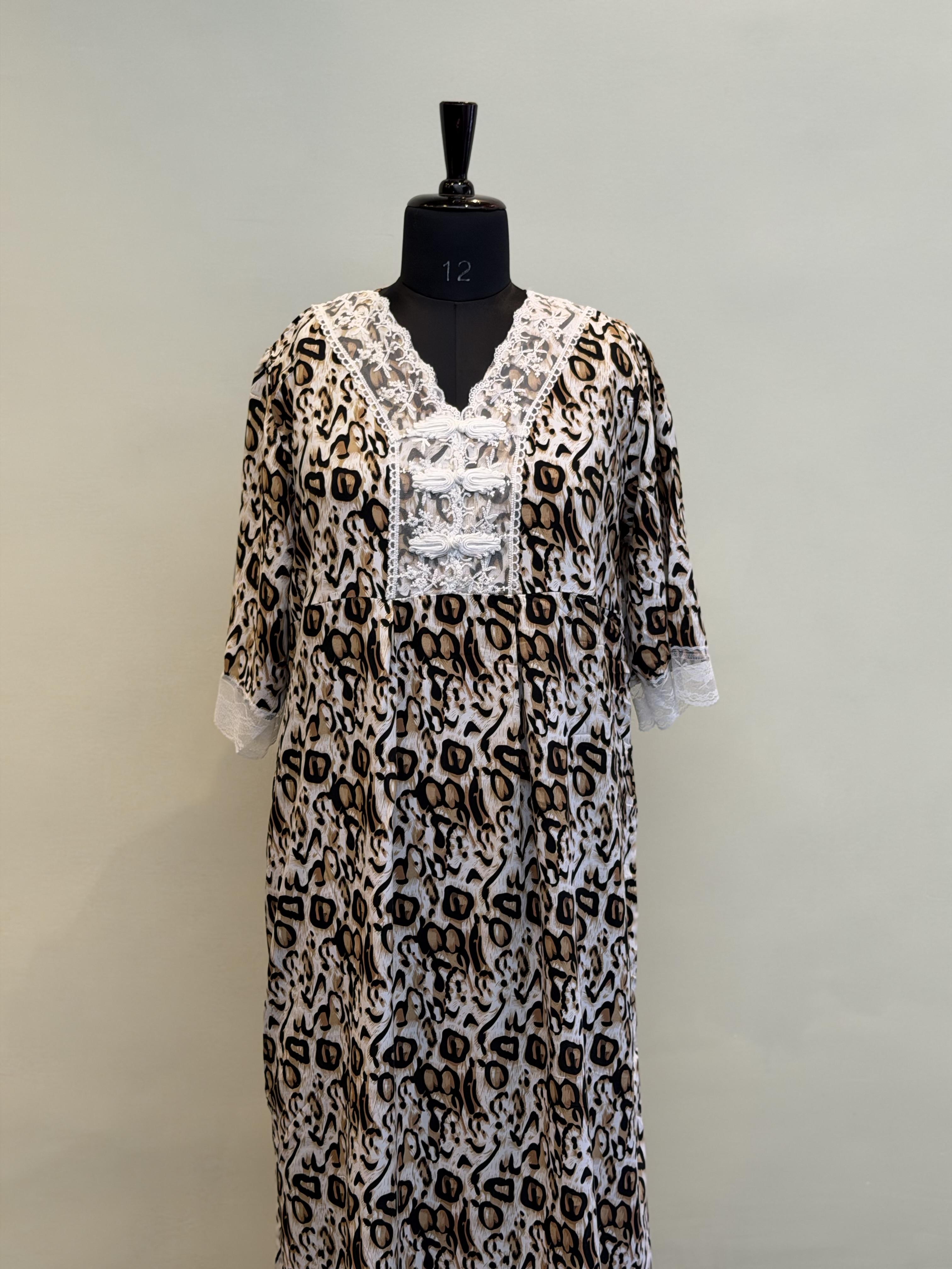 This stylish Animal print Dubai maxi designed for everyday comfort and ease. The maxi features a relaxed