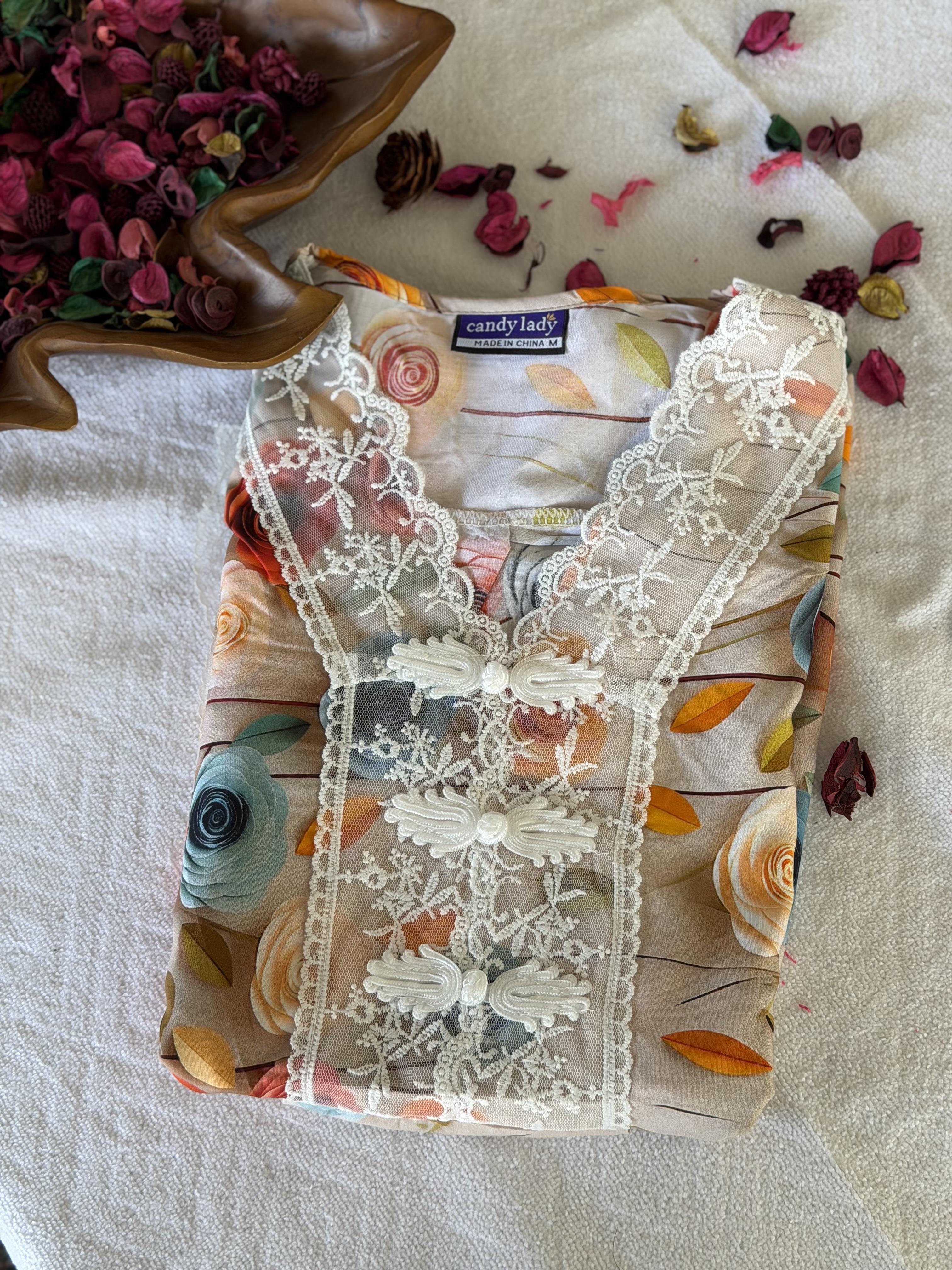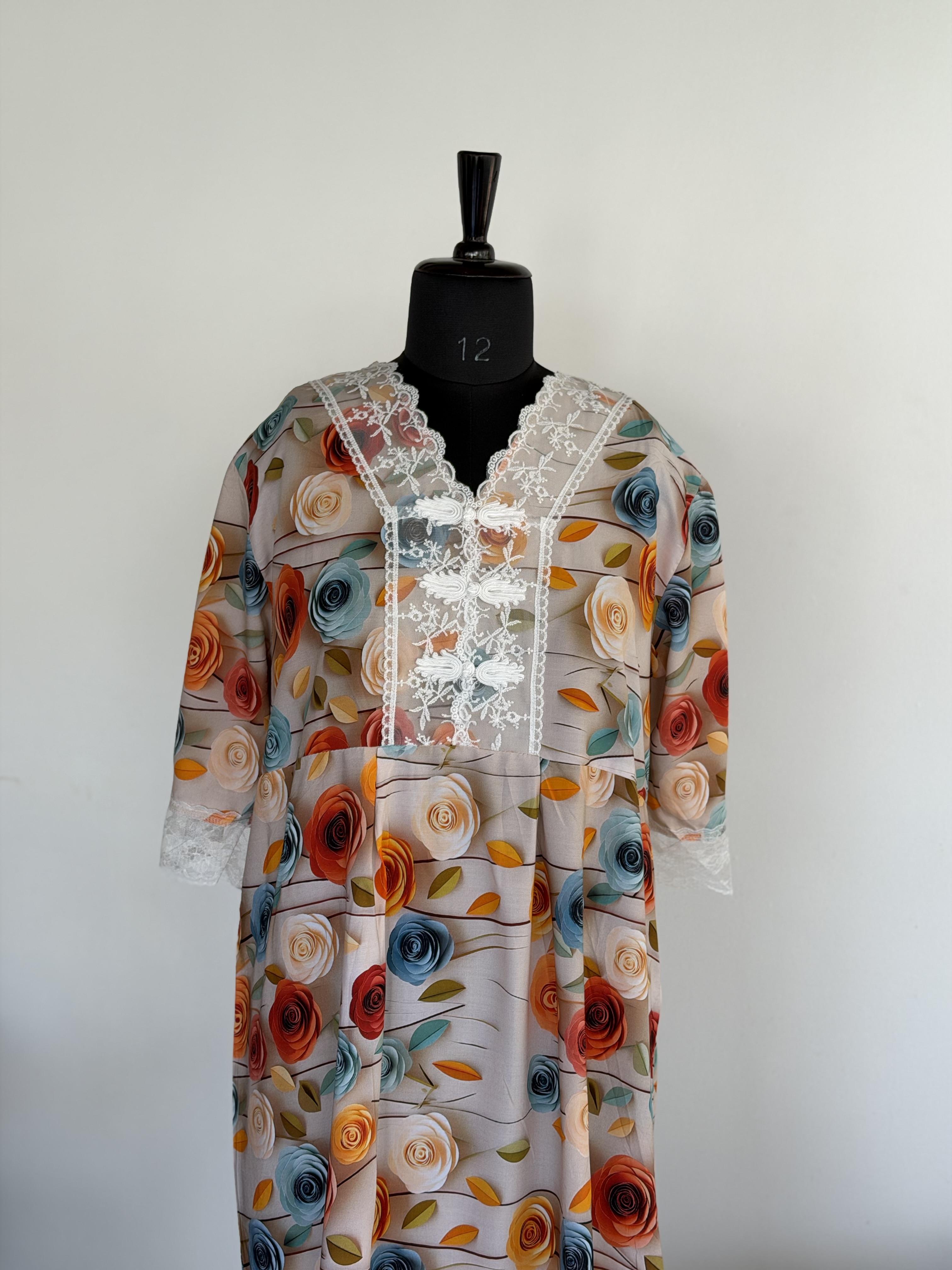 This is a loose fit maxi. Customers are kindly requested to check the size measurements carefully before placing the order, especially if purchasing for the first time.