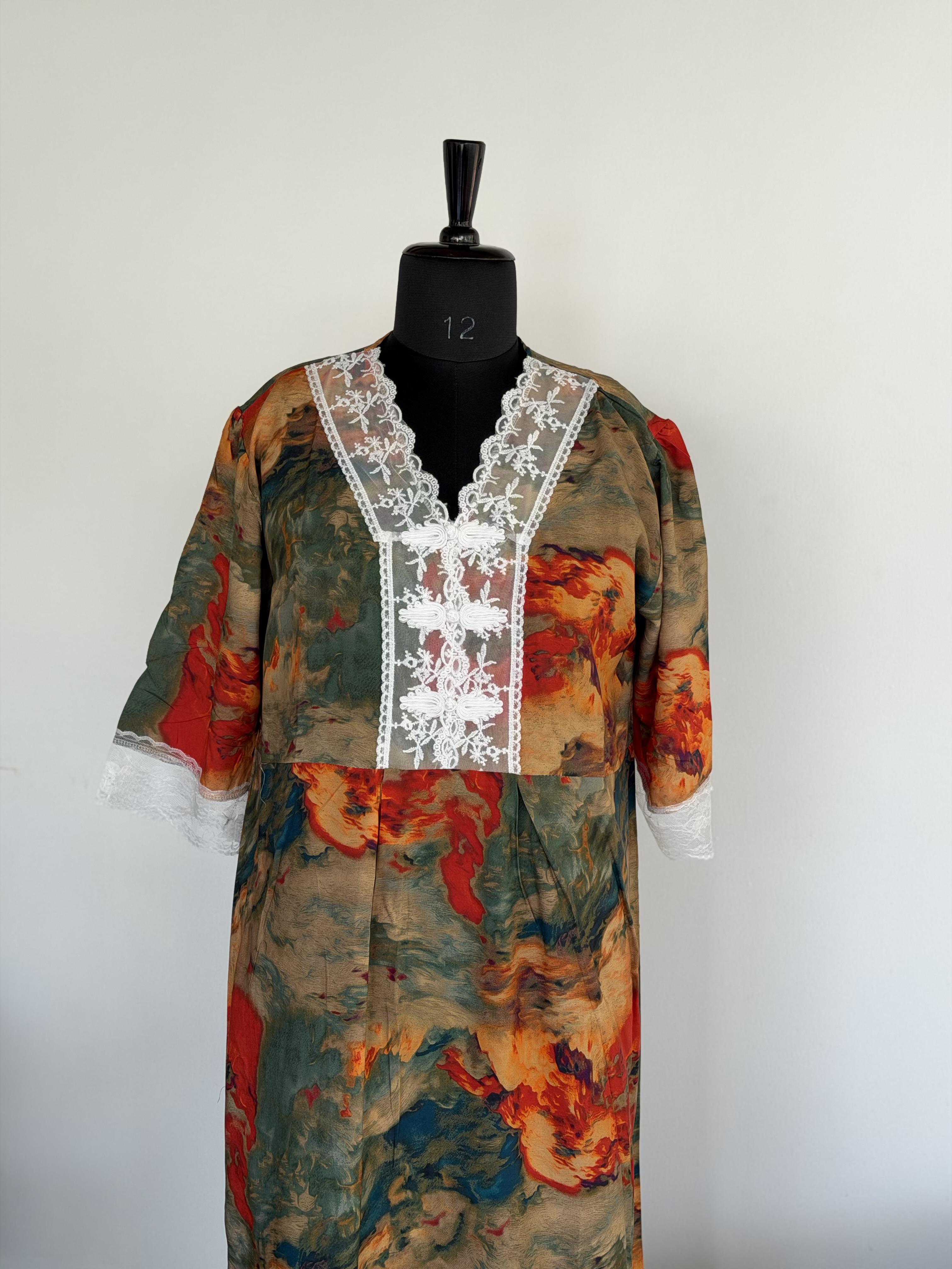 This is a loose fit maxi. Customers are kindly requested to check the size measurements carefully before placing the order, especially if purchasing for the first time.