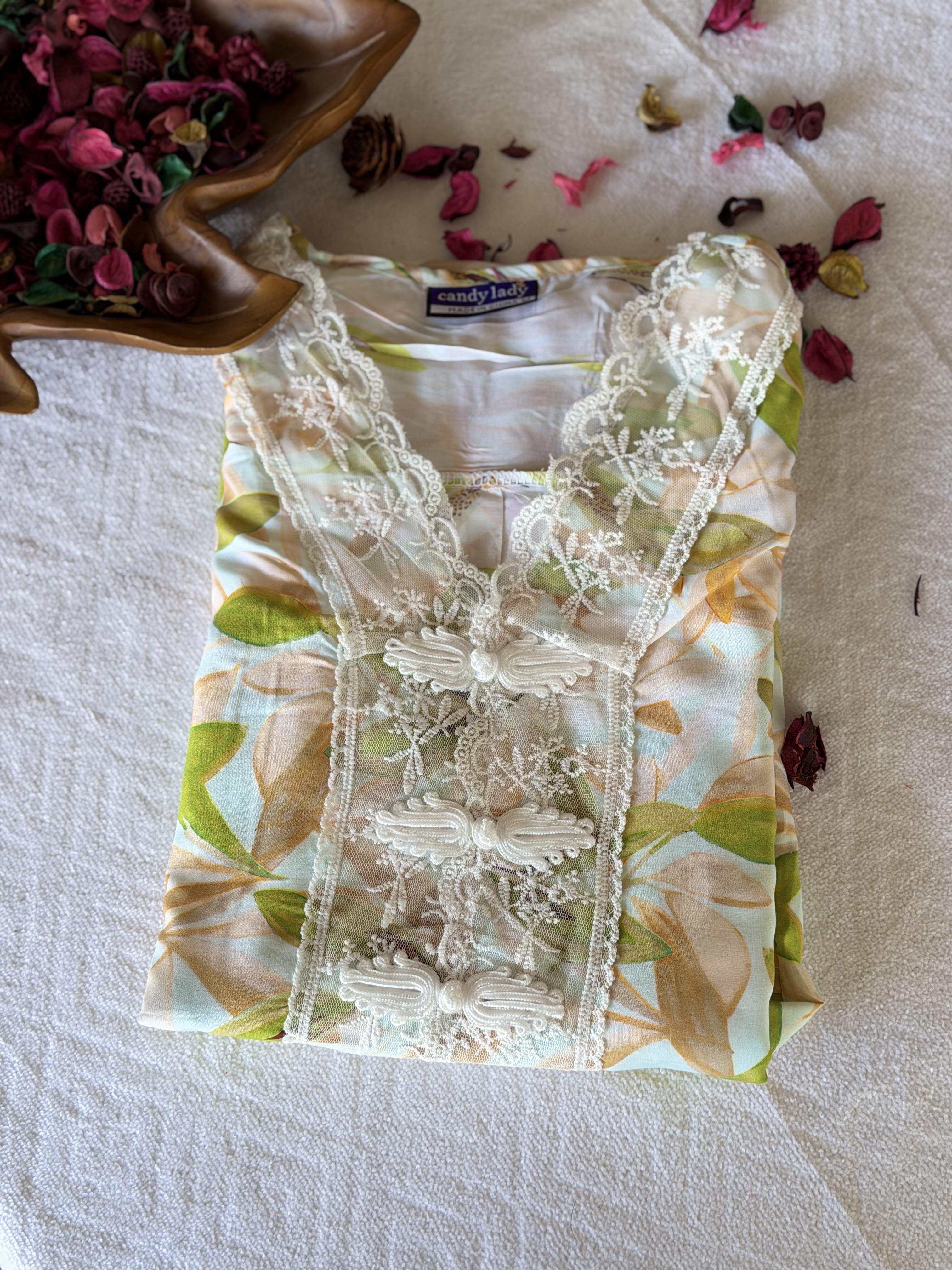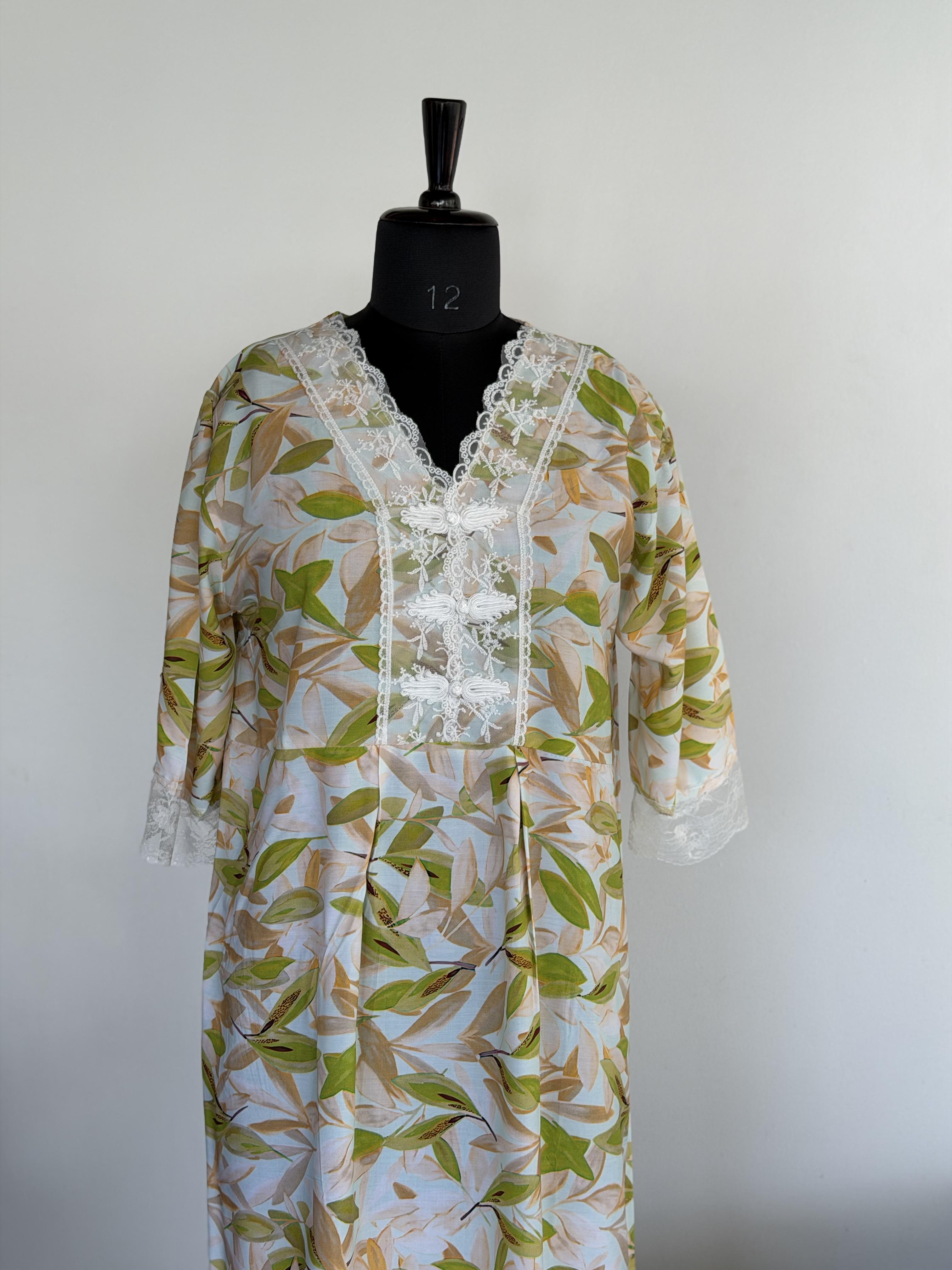 This is a loose fit maxi. Customers are kindly requested to check the size measurements carefully before placing the order, especially if purchasing for the first time.