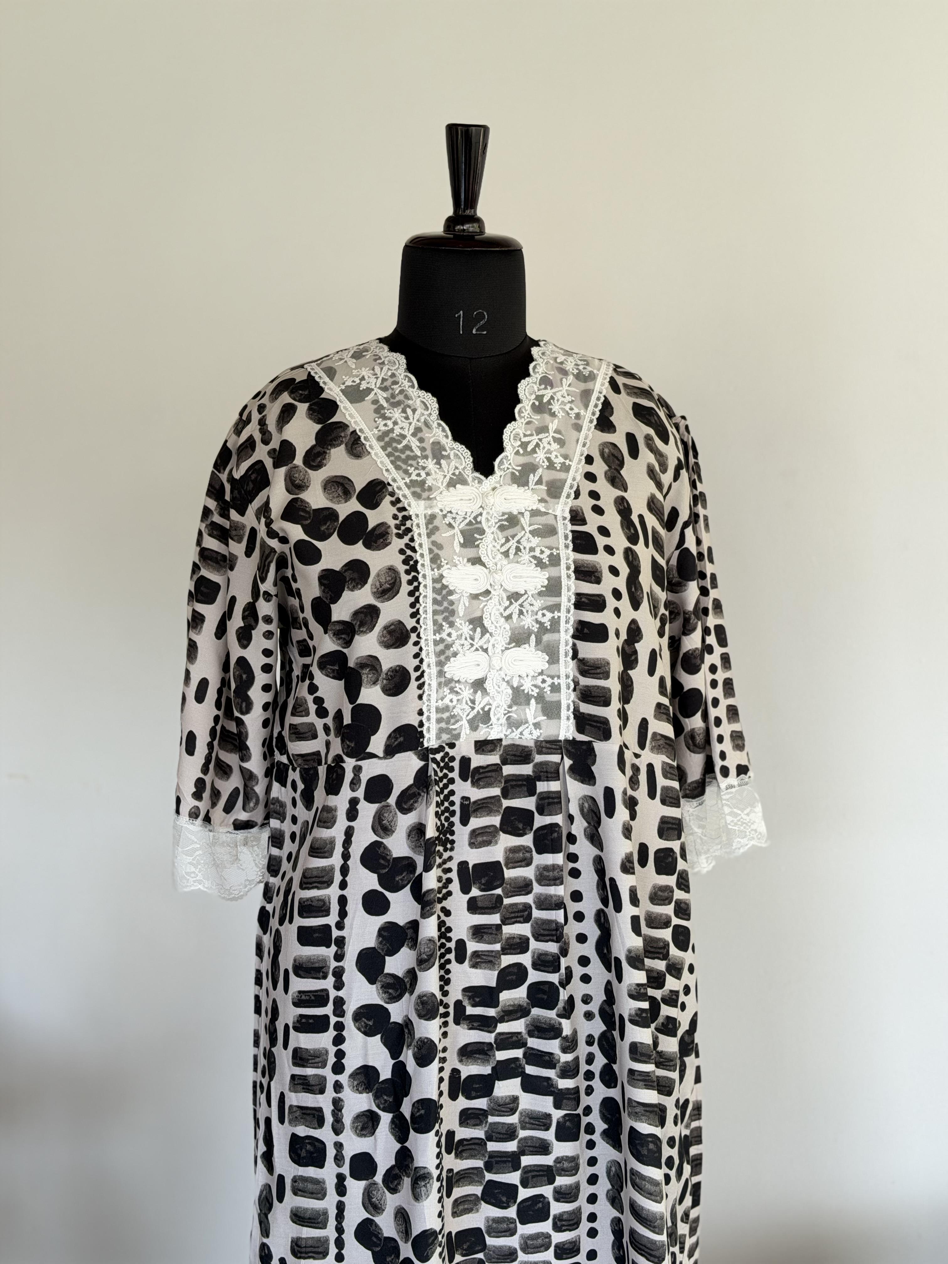 This is a loose fit maxi. Customers are kindly requested to check the size measurements carefully before placing the order, especially if purchasing for the first time.