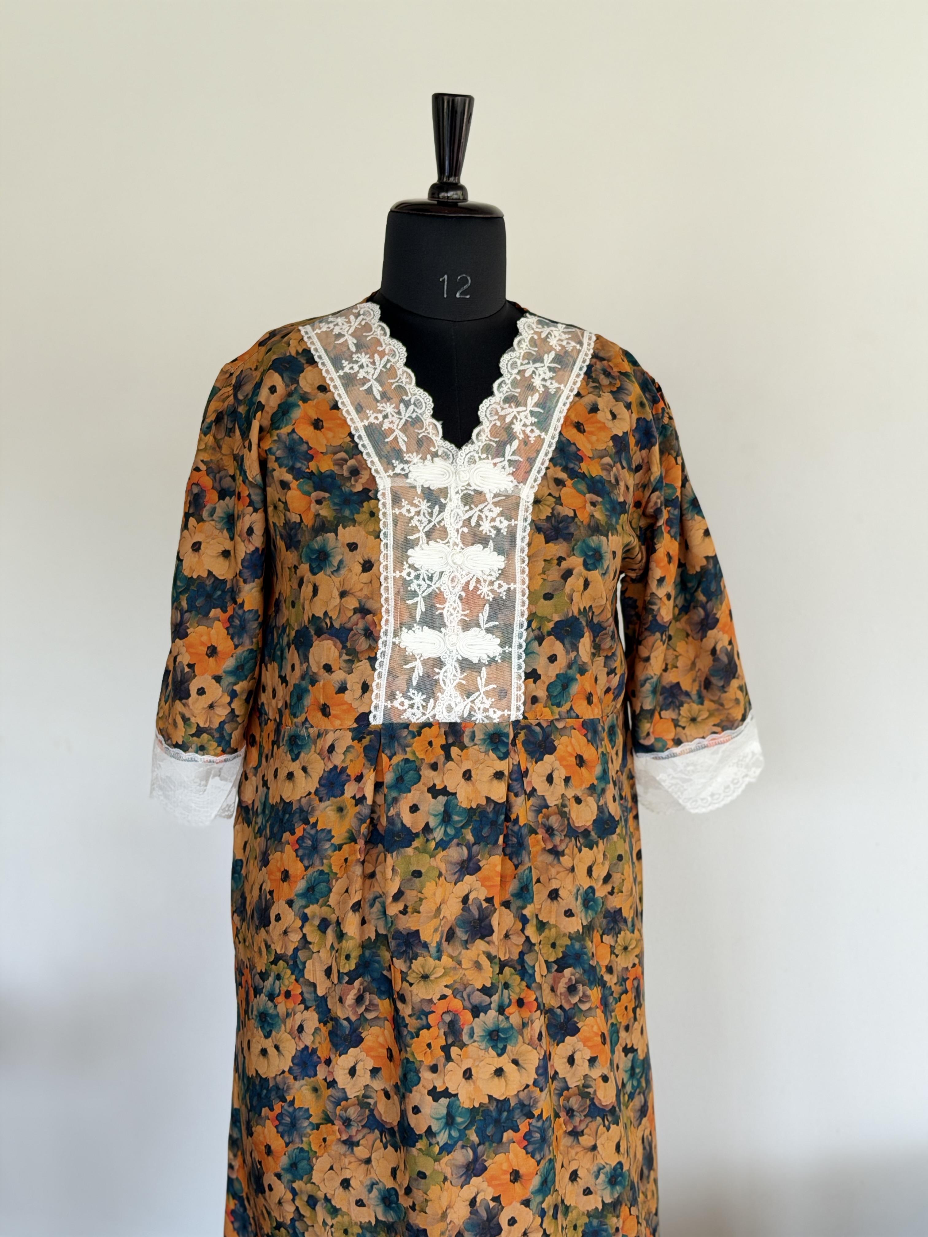 This is a loose fit maxi. Customers are kindly requested to check the size measurements carefully before placing the order, especially if purchasing for the first time.