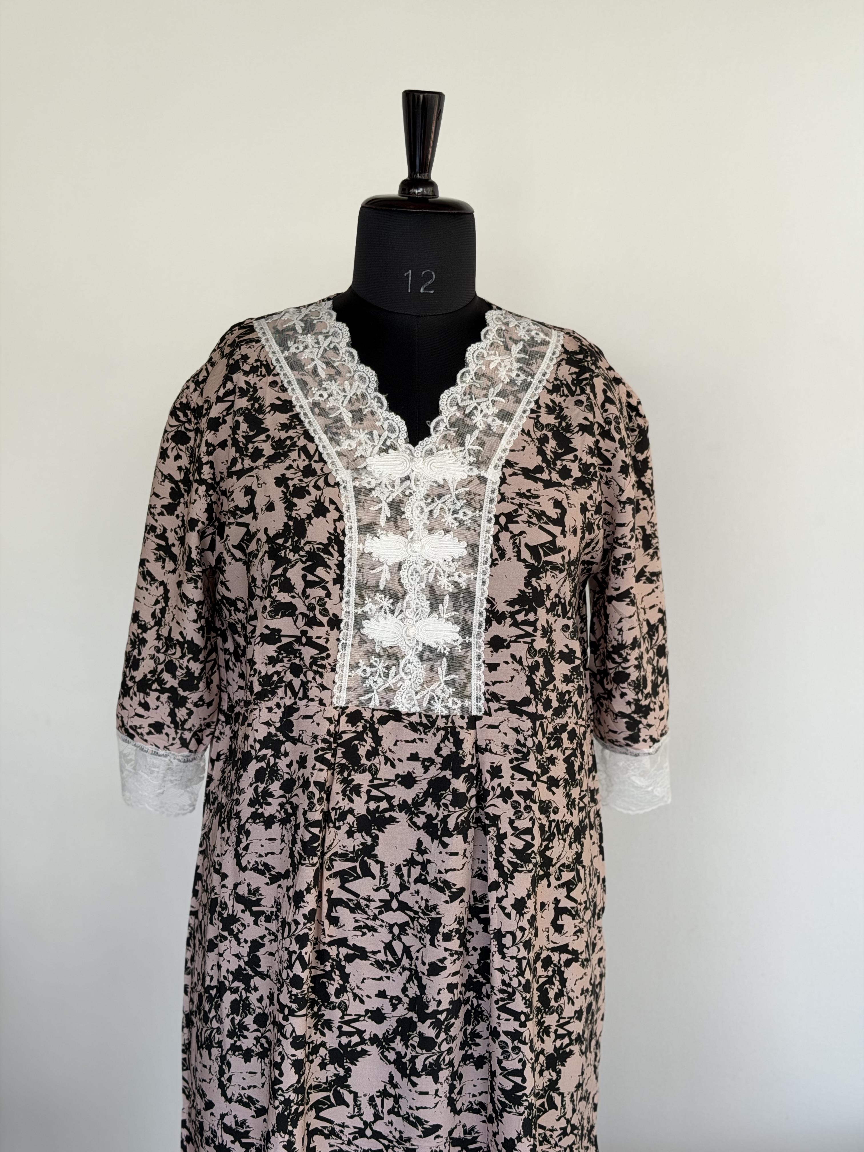 This is a loose fit maxi. Customers are kindly requested to check the size measurements carefully before placing the order, especially if purchasing for the first time.