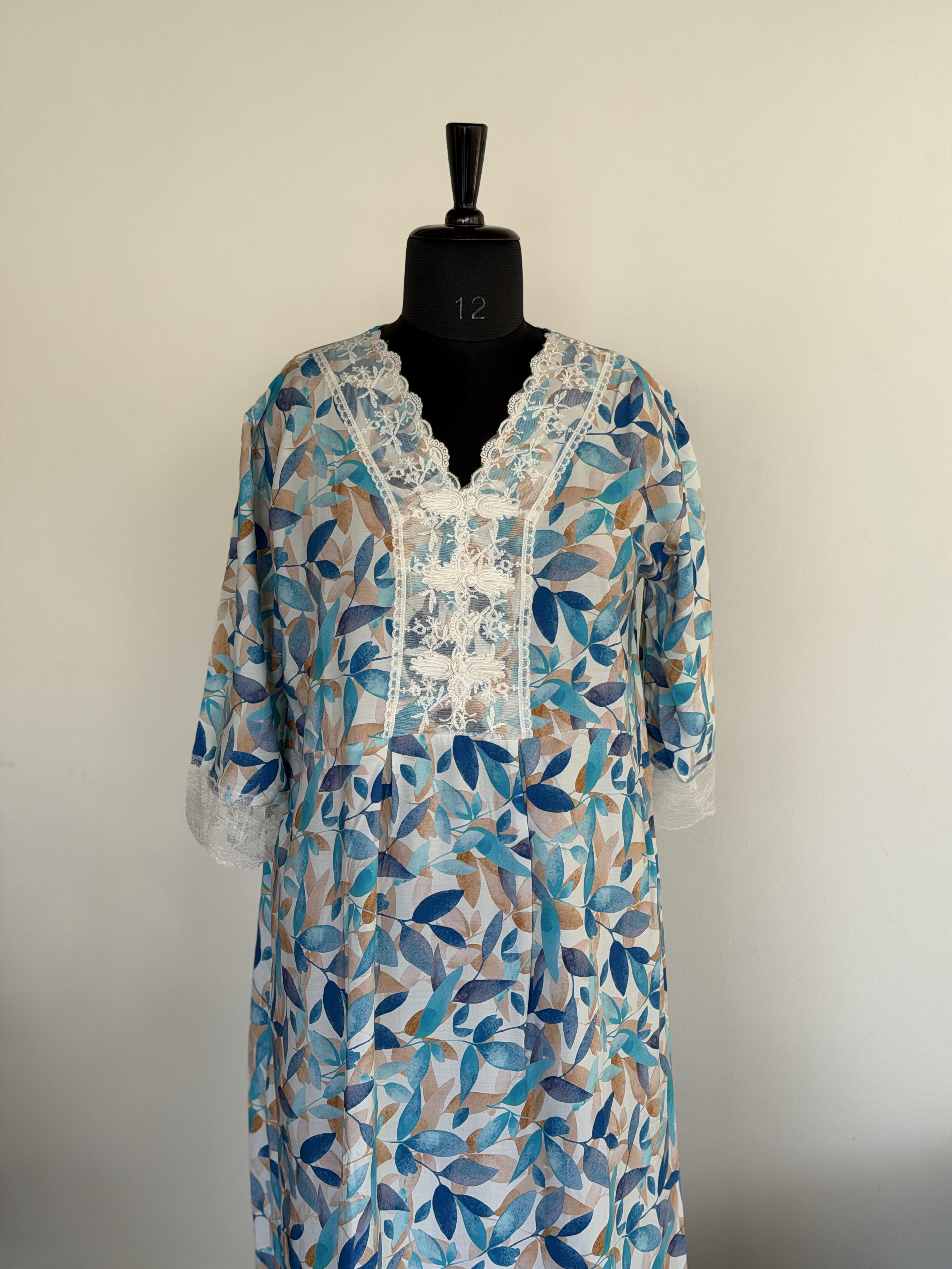 This is a loose fit maxi. Customers are kindly requested to check the size measurements carefully before placing the order, especially if purchasing for the first time.