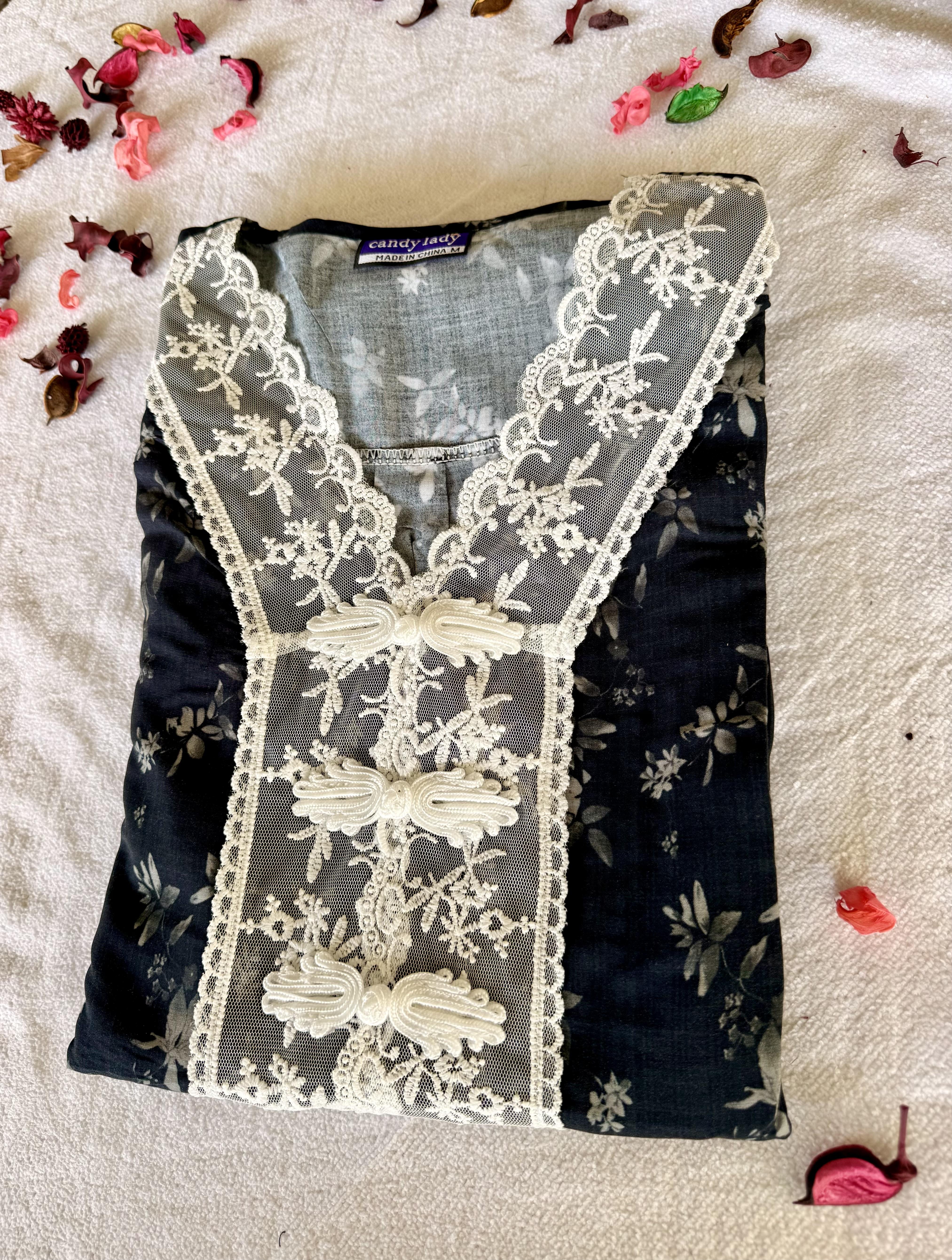 This is a loose fit maxi. Customers are kindly requested to check the size measurements carefully before placing the order, especially if purchasing for the first time.