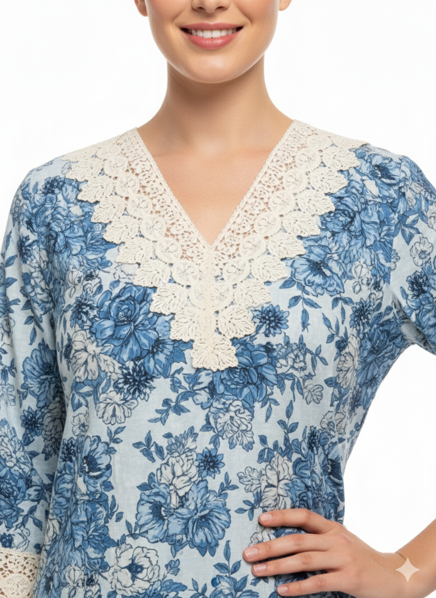 Product Description • Cotton Fabric• lace in V-neck design• Soft pastel prints for a soothing look