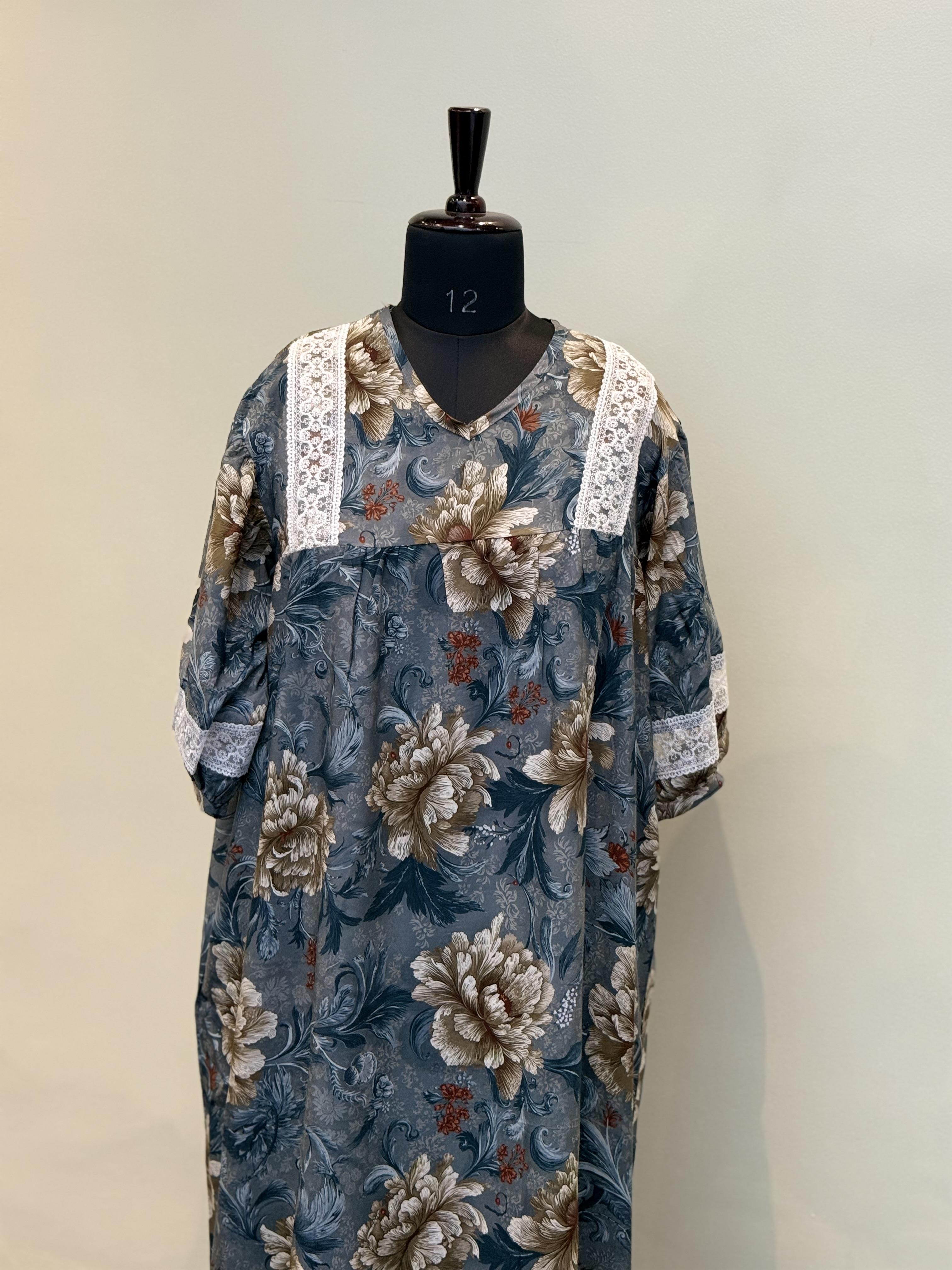 This stylish maxi is designed for comfort and effortless elegance. The loose flowing silhouette provides ease of movement, while the balloon sleeve design adds a fashionable and graceful touch to the overall look.