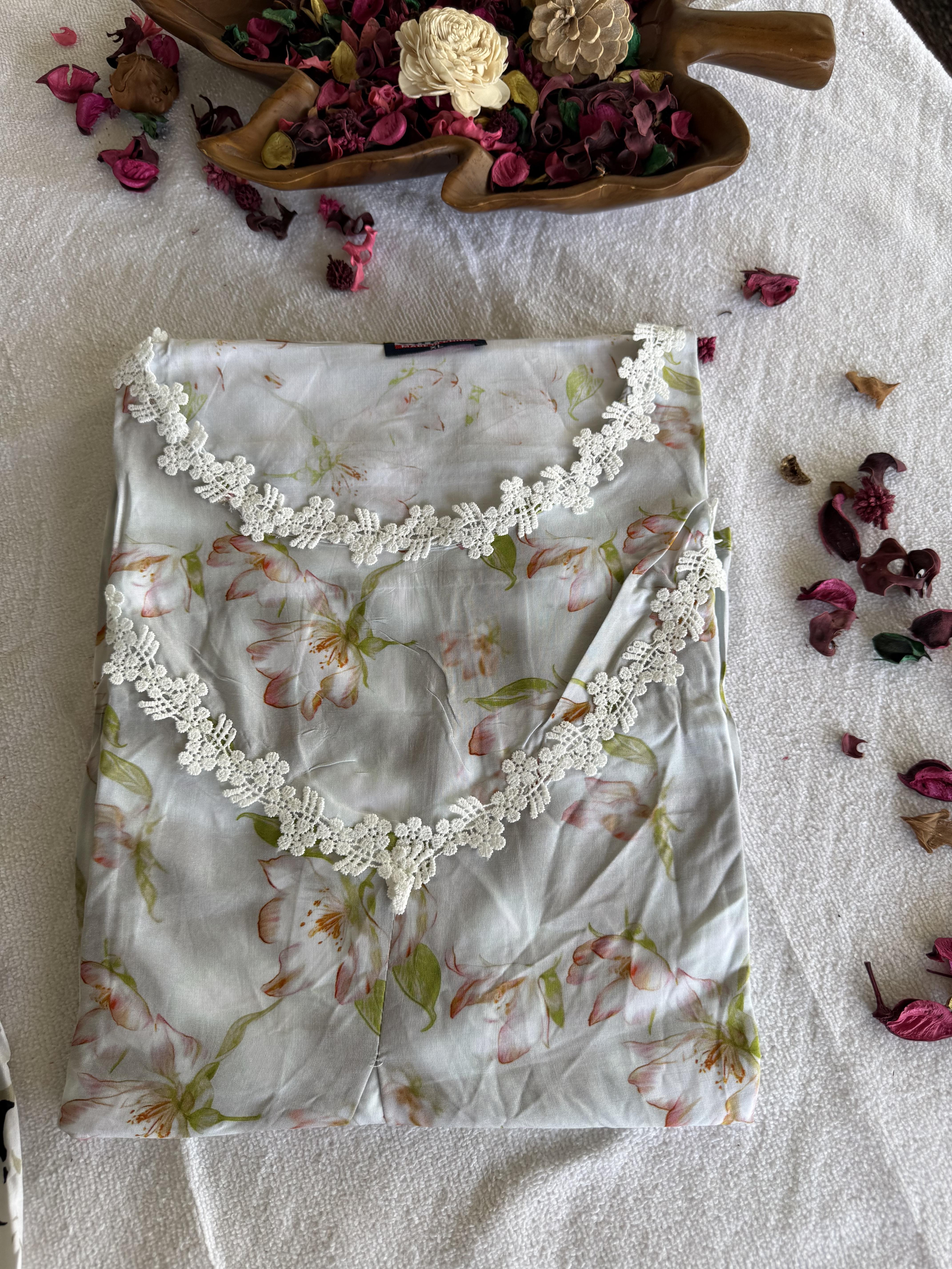 This elegant floral maxi is designed for everyday comfort with a relaxed and graceful look. The soft floral pattern and loose silhouette provide ease of movement, making it ideal for daily wear and home comfort.