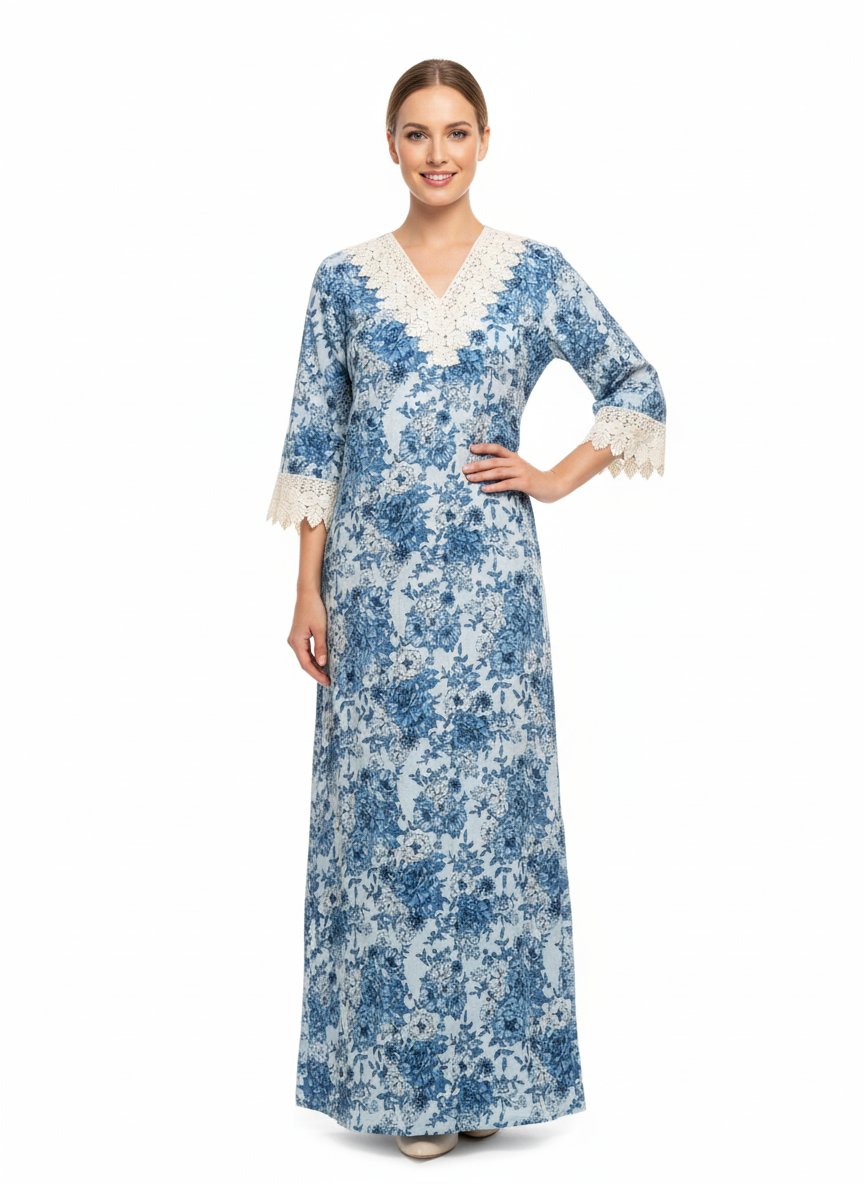 Product Description • Cotton Fabric• lace in V-neck design• Soft pastel prints for a soothing look