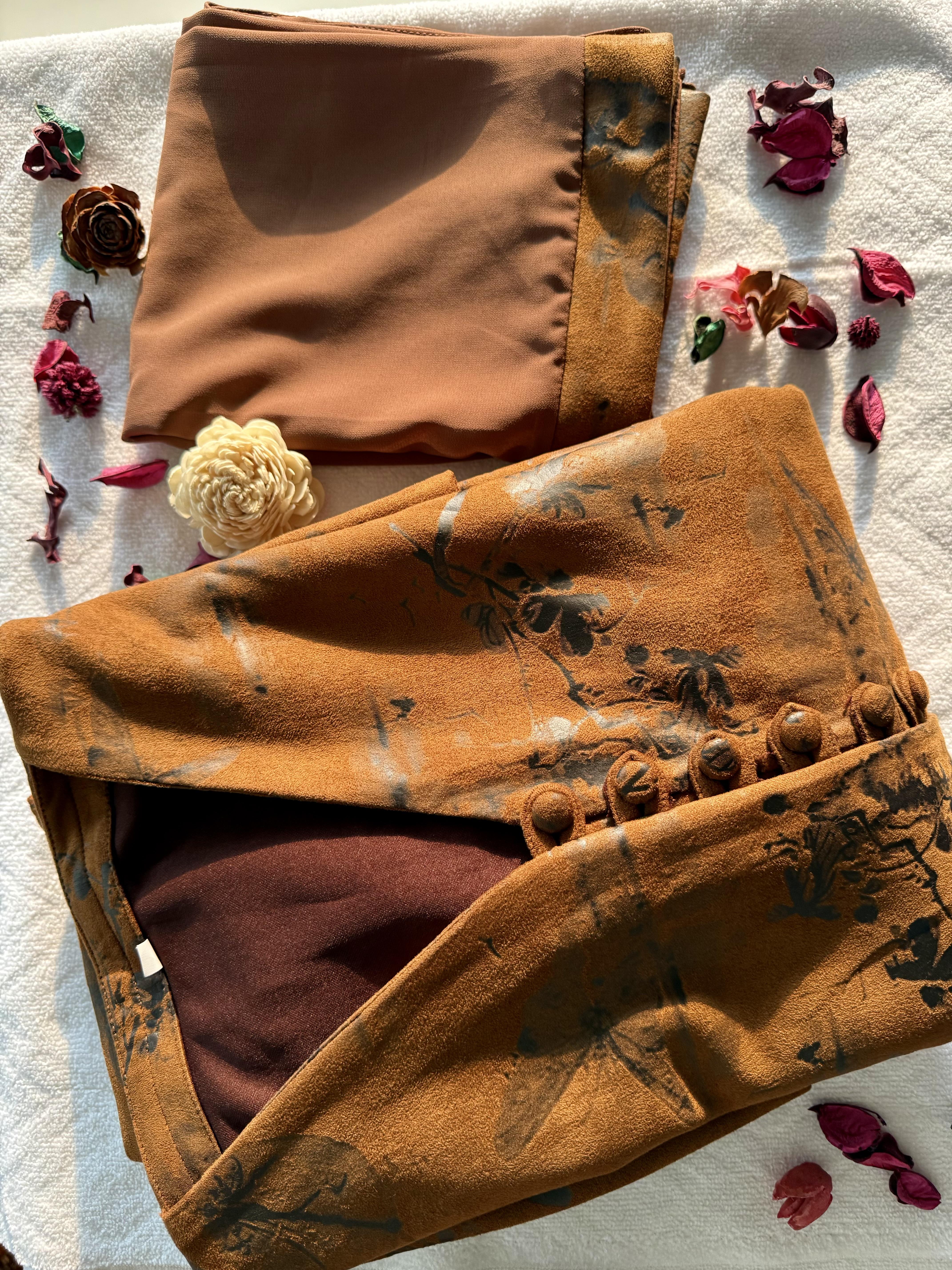 This elegant velvet abaya features a rich mocha brown tone with delicate floral detailing that adds a refined and graceful touch. The soft velvet fabric offers a luxurious feel while maintaining comfort for extended wear.